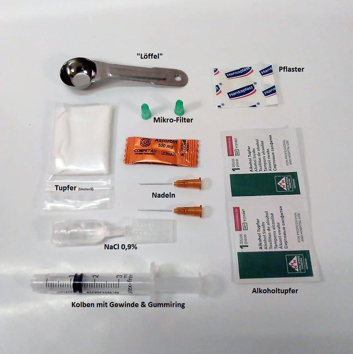 1 x Kochsalzlösung 0,9% /2ml